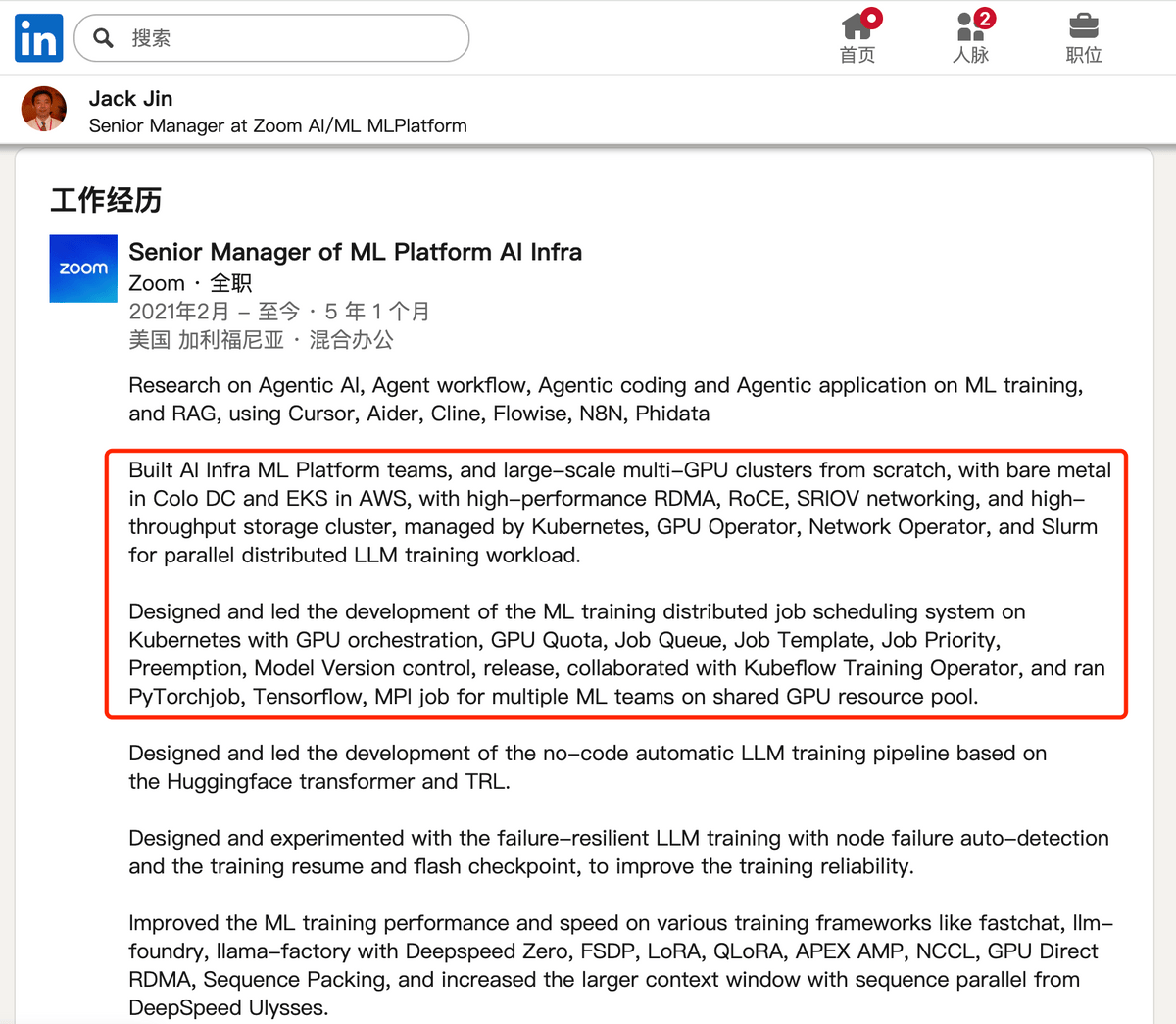 上LinkedIn简单看了下新任 CTO 的履历,长期深耕的是 AI Infra + 分布式训练体系,从多 GPU 裸金属集群,到基于 Kubernetes 的调度系统,再到 GPU 配额、抢占、分布式并行训练框架优化。